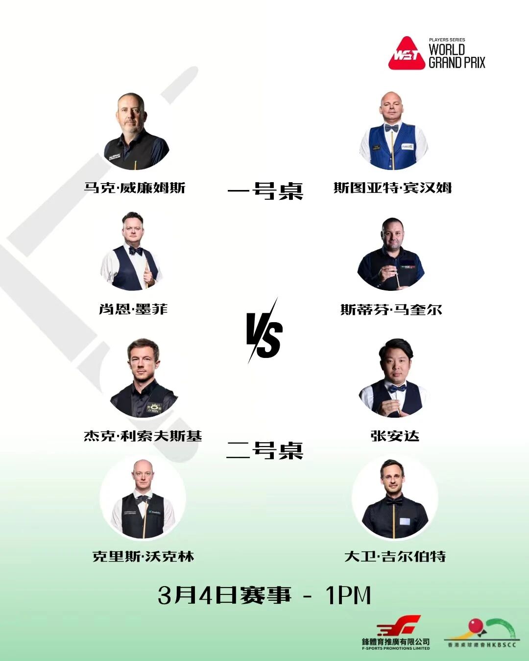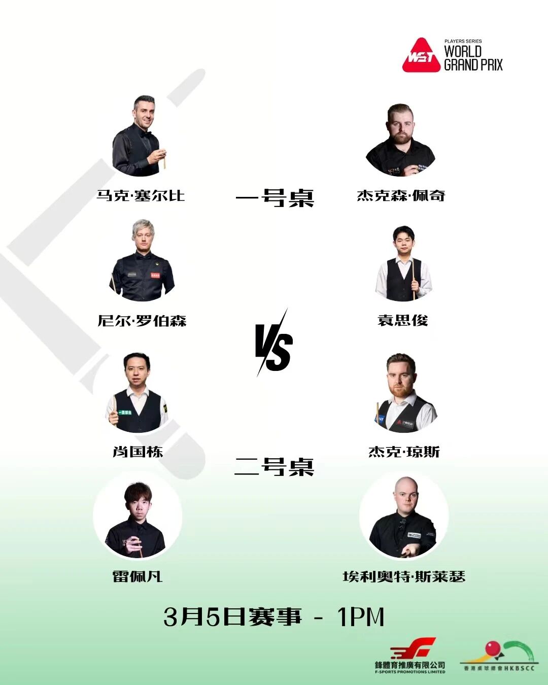 3月8日及3月9日上午11時將上演表演賽。周六上演香港名將傅家俊大戰「白旋風」韋德(Jimmy White),周日上演香港一姐、世界第二的吳安儀大戰世界一姐諾查勒(Mink Nutcharut)。表演賽門票將免費發放,詳情稍後公布。
