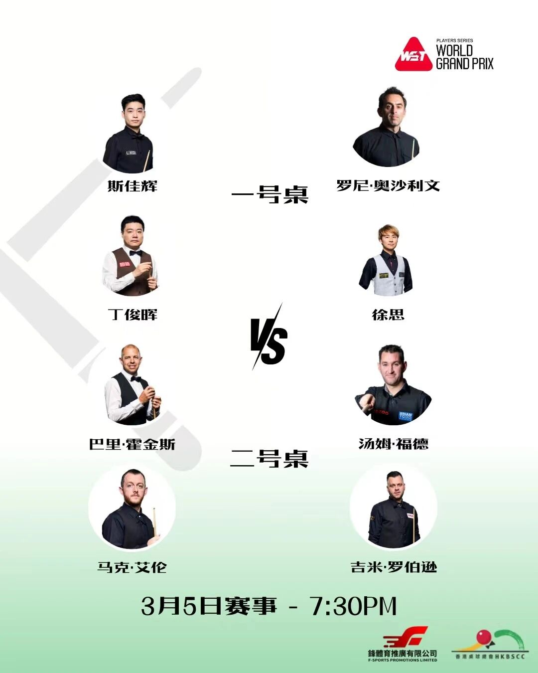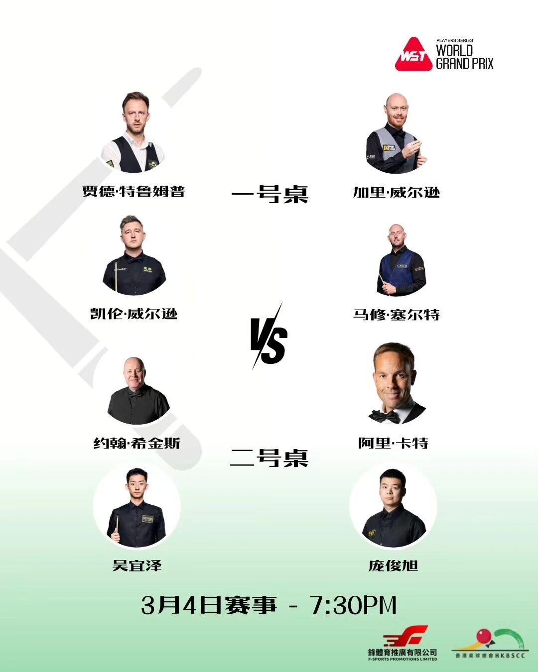 3月8日及3月9日上午11時將上演表演賽。周六上演香港名將傅家俊大戰「白旋風」韋德(Jimmy White),周日上演香港一姐、世界第二的吳安儀大戰世界一姐諾查勒(Mink Nutcharut)。表演賽門票將免費發放,詳情稍後公布。